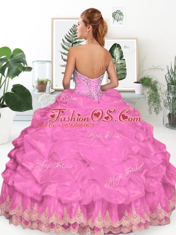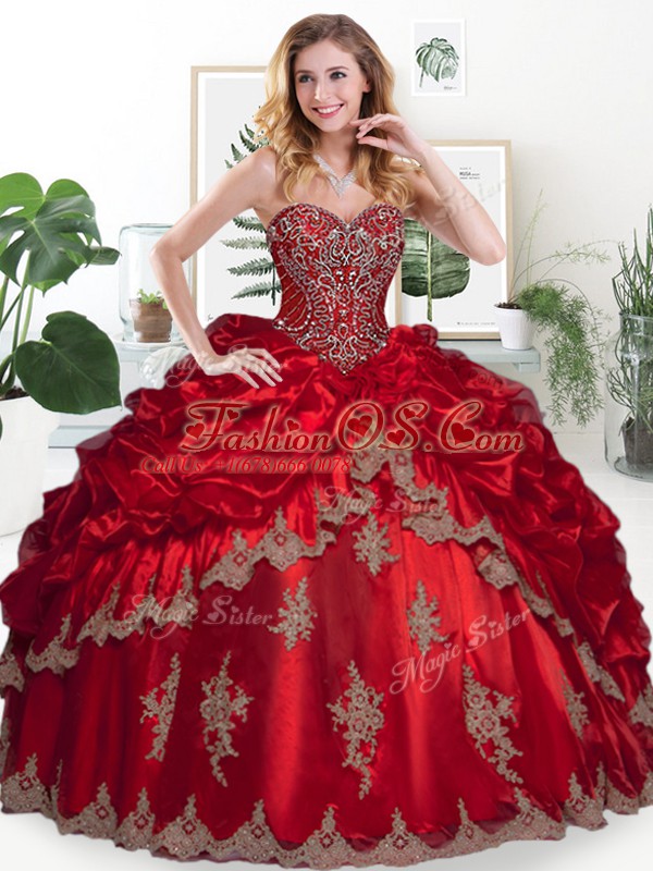 Beautiful Wine Red Sleeveless Floor Length Beading and Appliques and Pick Ups Lace Up Sweet 16 Dress