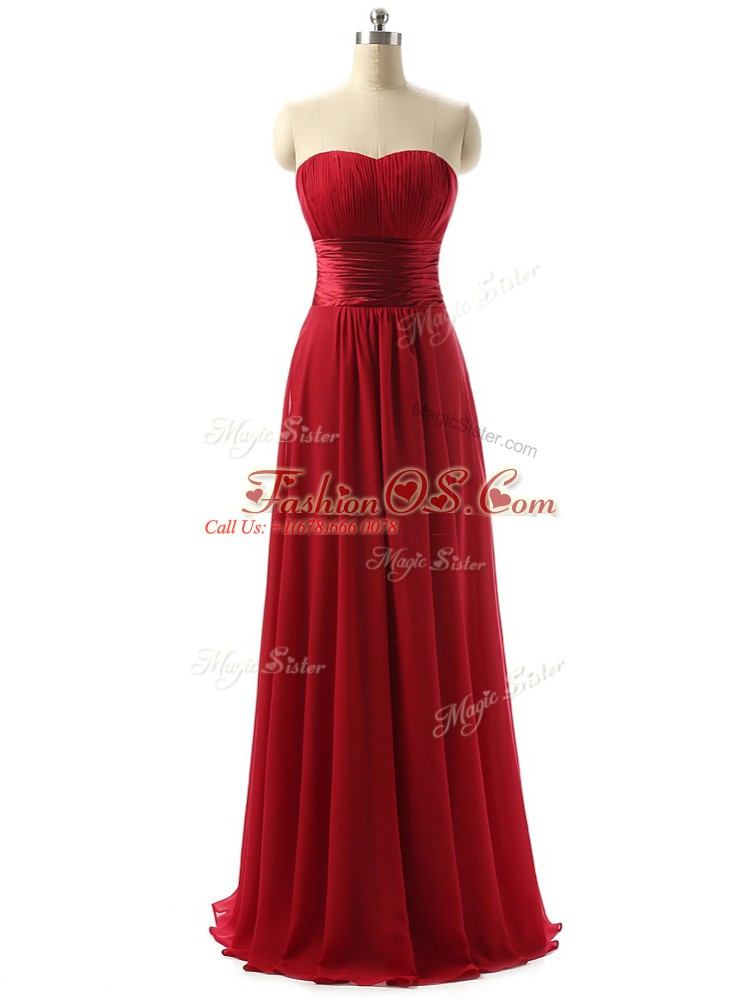 Beautiful Wine Red Sleeveless Floor Length Ruching Lace Up Wedding Guest Dresses