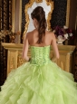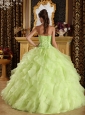 Home >  Quinceanera Dresses >  Popular Quinceanera Dresses > Beautiful Yellow Green Quinceanera Dress Strapless Satin and Organza Embroidery with Beading Ball Gown