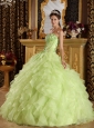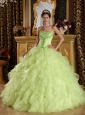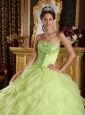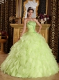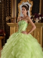 Beautiful Yellow Green Quinceanera Dress Strapless Satin and Organza Embroidery with Beading Ball Gown