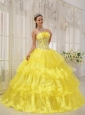 Beautiful Yellow Quinceanera Dress Strapless Taffeta and   Organza Beading Ball Gown