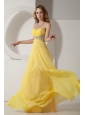 Beautiful Yellow Sweetheart Chiffon Prom Dress with Silver Beading