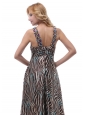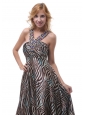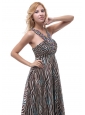 The gorgeou floor-length prom dress made of ruches and colorful beadworks and sequins accenting the straps. The zebra pinted chiffon skirt sways beautifully across the floor when you move, as if you're floating on air. This special evening ball gown dress is sure to impress at your next prom or special occasion party. You'll be the belle of the ball in this glittering prom gown.