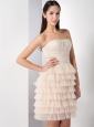 Home >  Special Occasion Dresses >  Cocktail Dresses > Beauty Champagne Ruffled Layers Strapless Cocktail Dress Mini-length