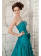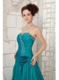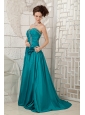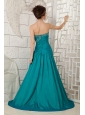 Beauty Turquiose A-line Sweetheart Prom Dress Taffeta Brush Train Beading