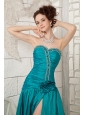Home >  Prom Dresses >  Sexy Prom Dresses > Beauty Turquiose A-line Sweetheart Prom Dress Taffeta Brush Train Beading