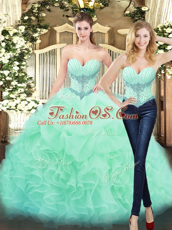 Best Apple Green 15th Birthday Dress Military Ball and Sweet 16 and Quinceanera with Beading and Ruffles Sweetheart Sleeveless Lace Up
