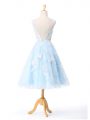 Best Appliques Dama Dress for Quinceanera Light Blue Backless Sleeveless Knee Length