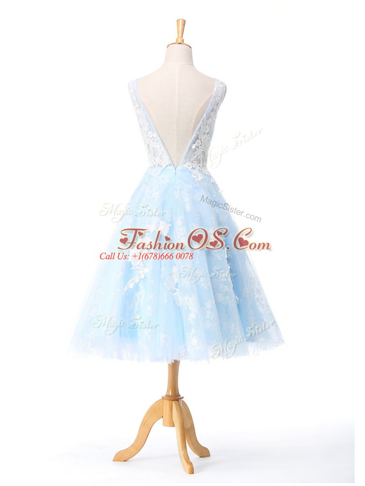 Home >  Special Occasion Dresses >  Discount Dama Dresses > Best Appliques Dama Dress for Quinceanera Light Blue Backless Sleeveless Knee Length