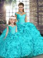 Best Aqua Blue Ball Gowns Beading and Ruffles Quinceanera Dress Lace Up Organza Sleeveless Floor Length