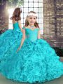Home >  Quinceanera Dresses >  Princesita with Quinceanera Dresses > Best Aqua Blue Ball Gowns Beading and Ruffles Quinceanera Dress Lace Up Organza Sleeveless Floor Length
