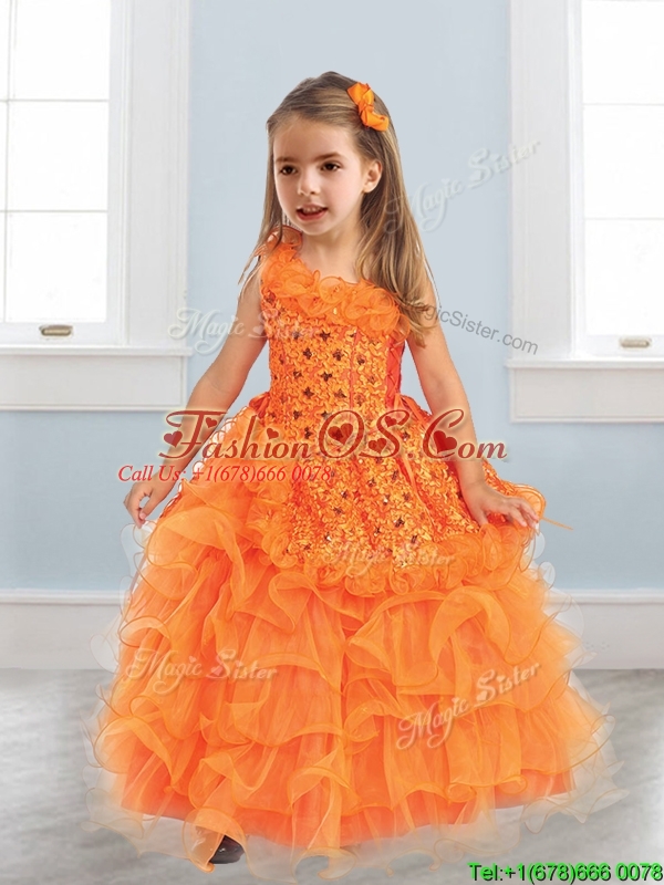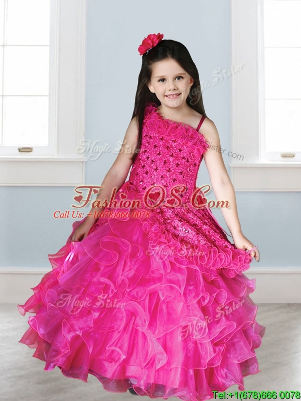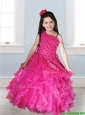 Best Asymmetrical Neckline Little Girl Pageant Dress with Appliques and Ruffled Layers