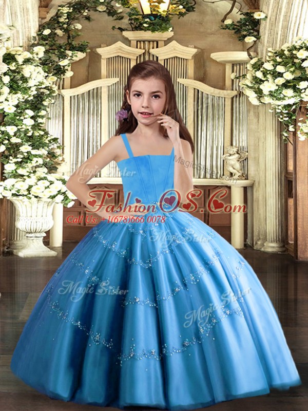 Home >  Special Occasion Dresses >  Pretty Little Girl Pageant Dresses > Best Baby Blue Sleeveless Tulle Lace Up Little Girls Pageant Dress for Party and Sweet 16 and Wedding Party