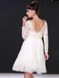 Best Bateau Long Sleeves Wedding Dress Knee Length Lace White Lace