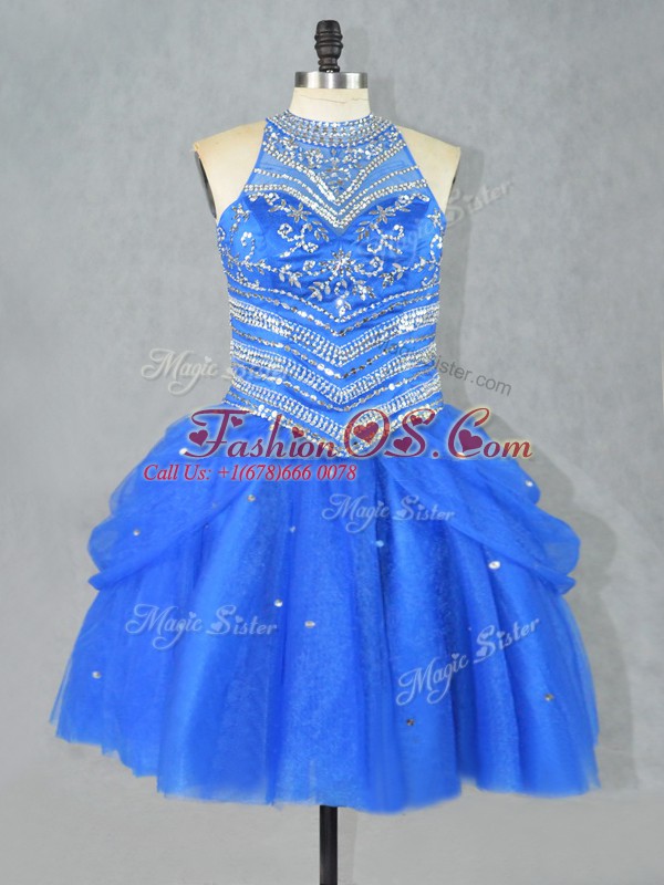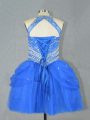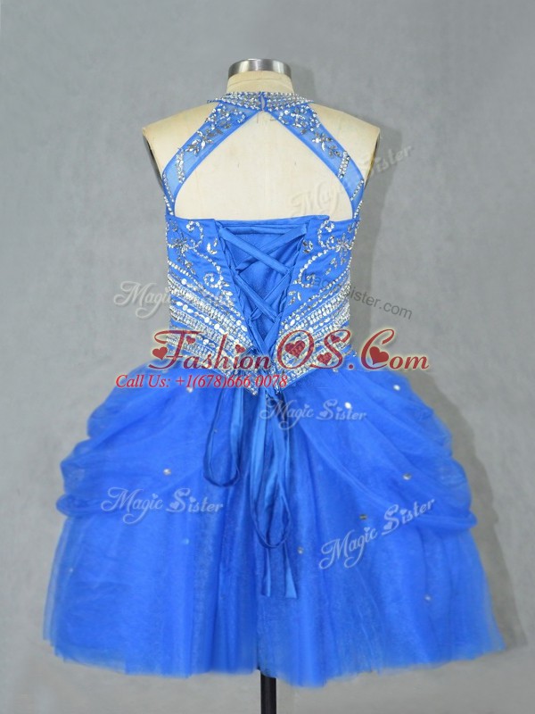Best Blue Tulle Lace Up Prom Dresses Sleeveless Mini Length Beading