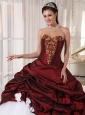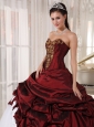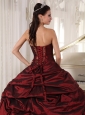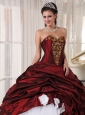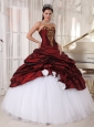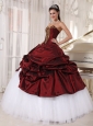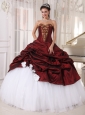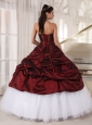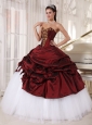 Best Burgundy and White Quinceanera Dress Sweetheart Taffeta and Tulle Appliques Ball Gown