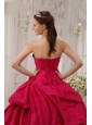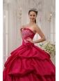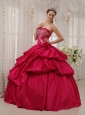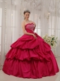 Best Coral Red Quinceanera Dress Strapless Taffeta Beading Ball Gown