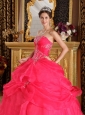 Home >  Quinceanera Dresses >  Sweet 16 Dresses > Best Coral Red Sweet 16 Dress Strapless Organza Appliques Ball Gown