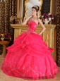 Best Coral Red Sweet 16 Dress Strapless Organza Appliques Ball Gown