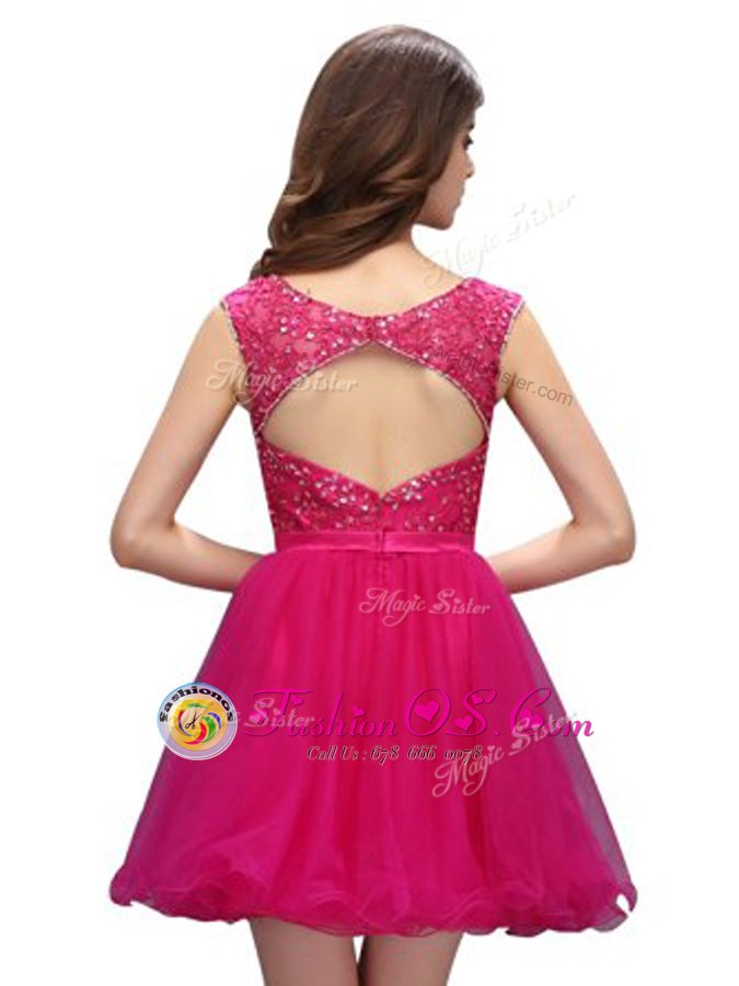 Best Fuchsia Sleeveless Organza Zipper Prom Evening Gown for Prom and Party