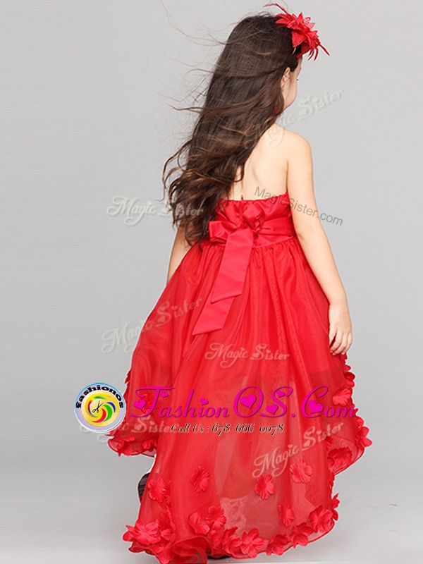 Best Halter Top Sleeveless Appliques and Bowknot Zipper Flower Girl Dress