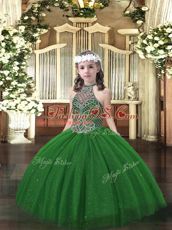 Best Halter Top Sleeveless Tulle Child Pageant Dress Beading Lace Up