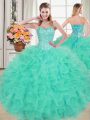 Best Lace Up Sweet 16 Quinceanera Dress Turquoise for Prom and Party and Military Ball and Sweet 16 and Quinceanera with Beading and Ruffled Layers Brush Train