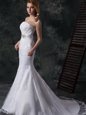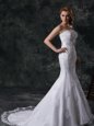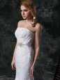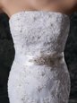 Home >  Wedding Dresses >  Beautiful Wedding Dresses > Best Mermaid Lace Strapless Sleeveless Lace Up Beading and Appliques and Belt Wedding Dress in White