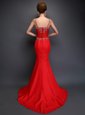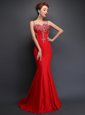 Home >  Prom Dresses >  Plus Size Prom Dresses > Best Mermaid Red Satin Zipper Prom Evening Gown Sleeveless With Brush Train Beading