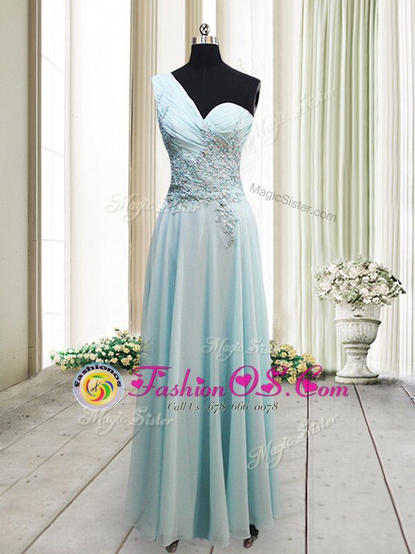 Home >  Special Occasion Dresses >  Homecoming Dresses > Best One Shoulder Ankle Length Side Zipper Hoco Dress Light Blue and In for Prom and Party with Beading and Appliques