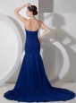 Best Peacock Blue Chiffon Sweetheart Prom Dress with Appliques and Ruch