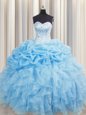 Home >  Quinceanera Dresses >  Puffy Quinceanera Dresses > Best Pick Ups Visible Boning Ball Gowns 15th Birthday Dress Sweetheart Organza Sleeveless Floor Length Lace Up