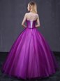 Best Scoop Purple Tulle Lace Up 15th Birthday Dress Sleeveless Floor Length Beading and Appliques