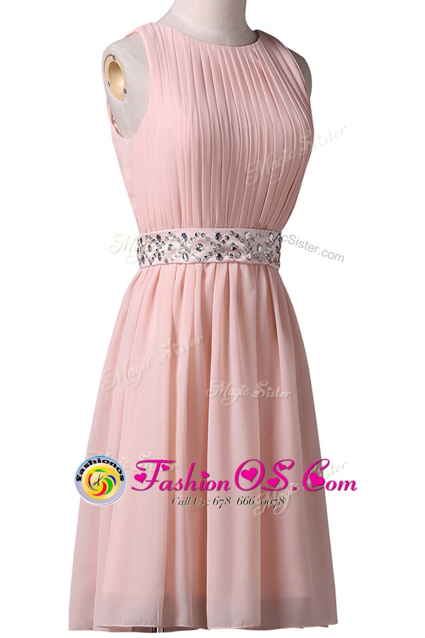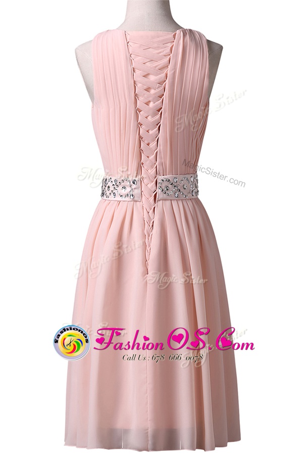 Best Scoop Sleeveless Chiffon Prom Dresses Beading Lace Up