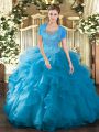 Home >  Quinceanera Dresses >  Puffy Quinceanera Dresses > Best Scoop Sleeveless Clasp Handle Sweet 16 Dress Teal Tulle