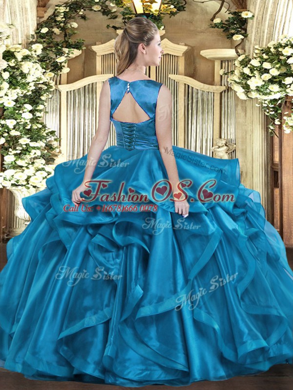 Best Scoop Sleeveless Quinceanera Dresses Floor Length Ruffles Purple Organza
