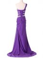 Best Selling Beading and Ruching Juniors Evening Dress Purple Lace Up Sleeveless Brush Train
