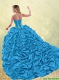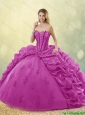 Best Selling Brush Train Beading Quinceanera Dresses in Fuchsia