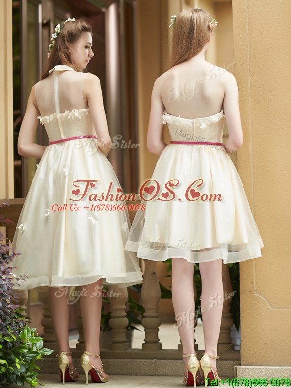 Best Selling Champagne Organza Dama Dress with Appliques and Sashes