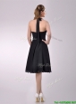 Best Selling Chiffon Halter Top Ruched Bridesmaid Dress in Black