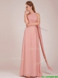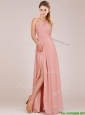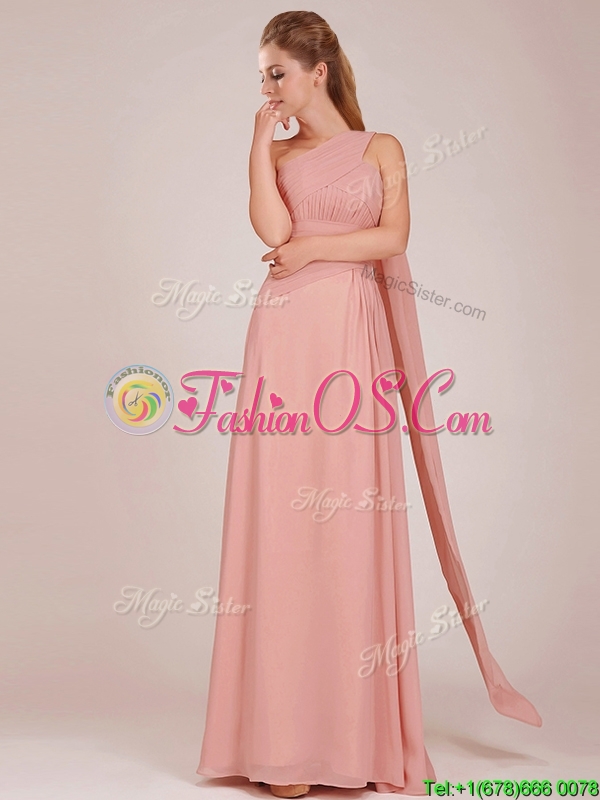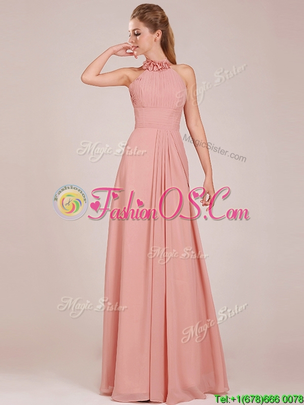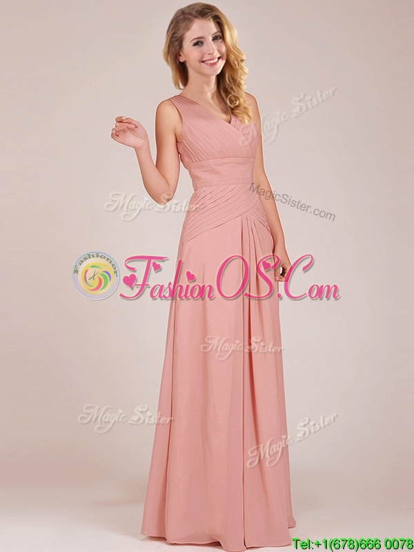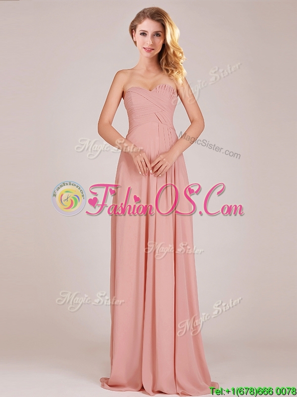 Best Selling Chiffon Peach Long Dama Dress with Ruching
