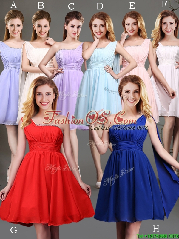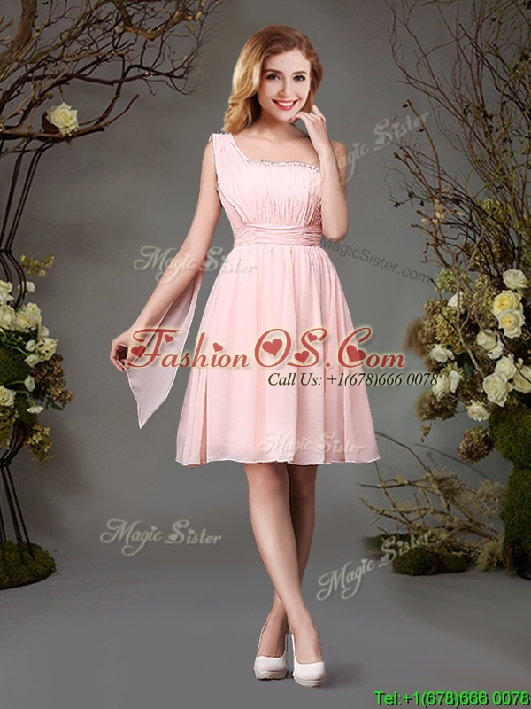 Home >  Special Occasion Dresses >  New Style Dama Dresses > Best Selling Empire Chiffon Beaded Top and Ruched Dama Dress in Pink