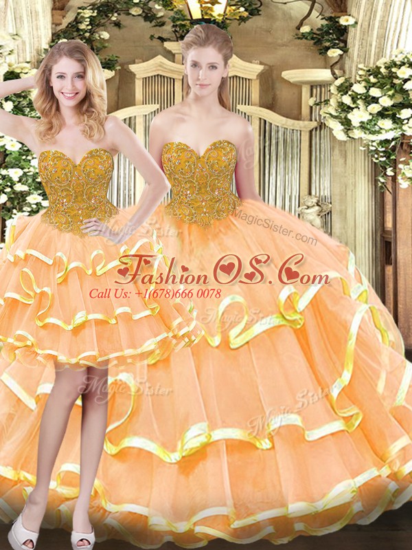 Best Selling Floor Length Ball Gowns Sleeveless Peach Ball Gown Prom Dress Lace Up