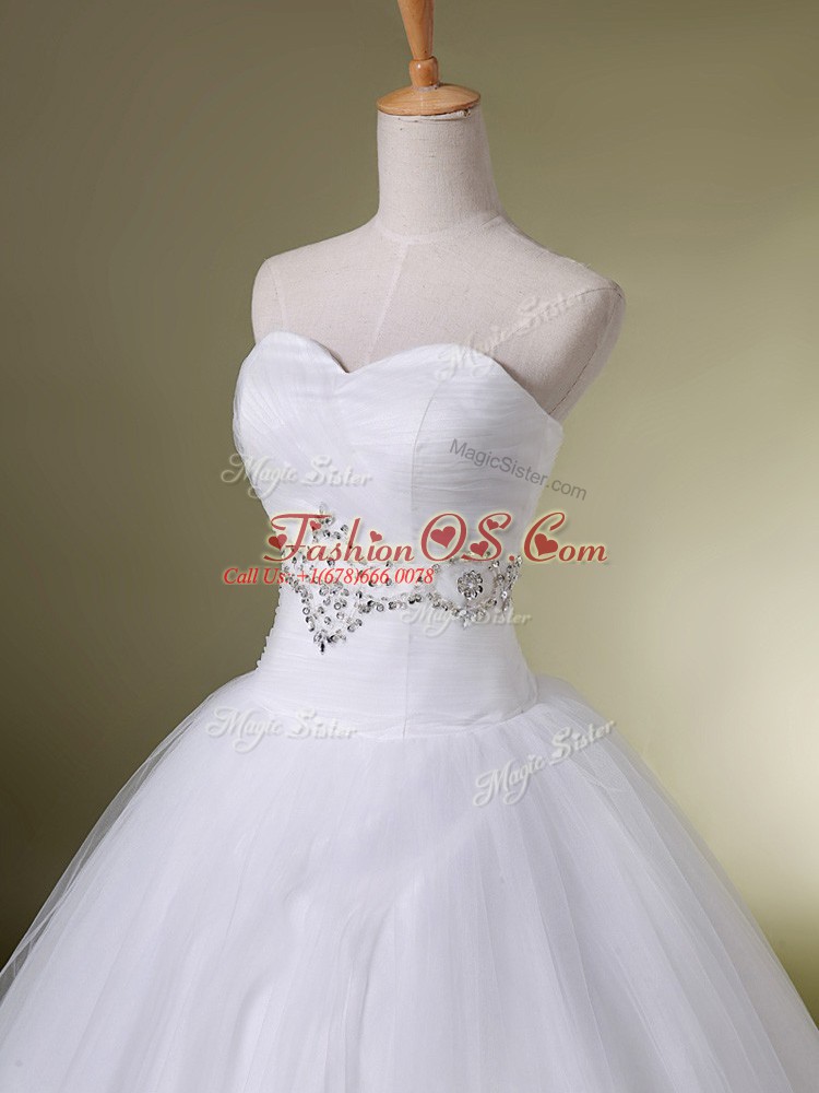 Best Selling Floor Length White Bridal Gown Sweetheart Sleeveless Lace Up