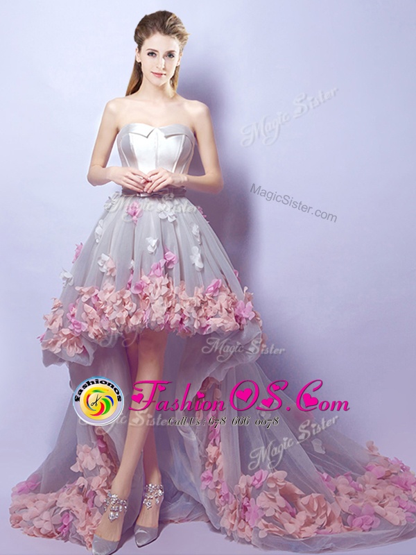 Home >  Prom Dresses >  Perfect Prom Dresses > Best Selling Grey A-line Appliques Dress for Prom Lace Up Tulle Sleeveless High Low