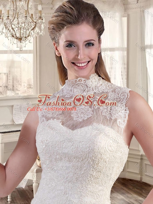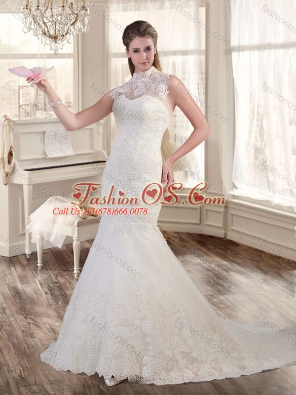 Best Selling High Neck Mermaid Wedding Dresses with Brush Train