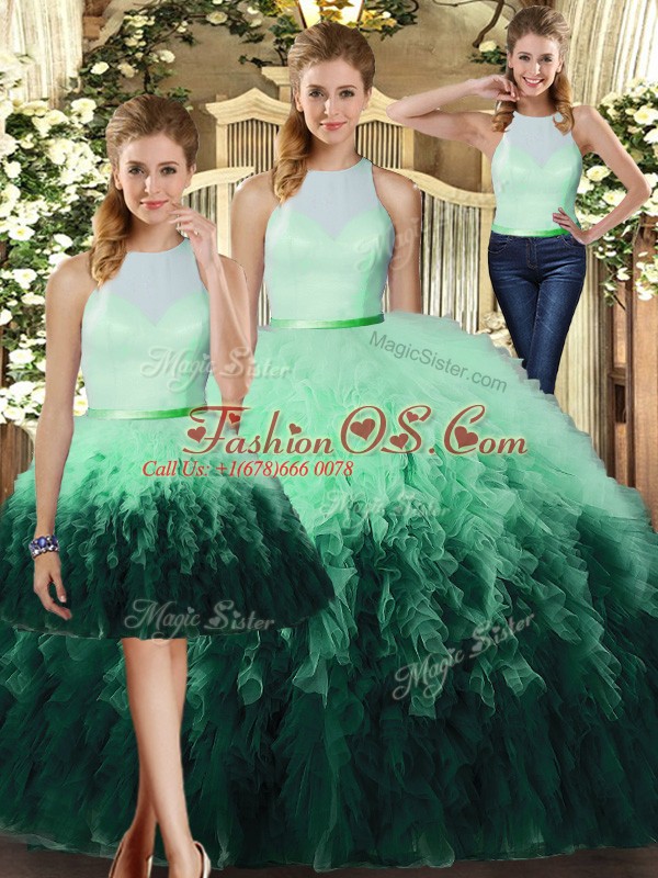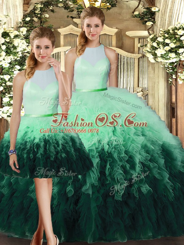 Best Selling High-neck Sleeveless Backless Quinceanera Dress Multi-color Tulle