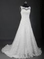 Best Selling Lace Bridal Gown White Lace Up Sleeveless Brush Train