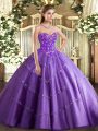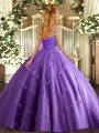 Best Selling Lavender Ball Gowns Appliques and Embroidery Ball Gown Prom Dress Lace Up Tulle Sleeveless Floor Length