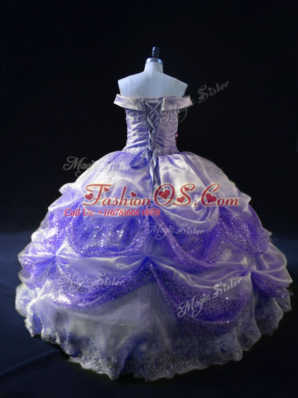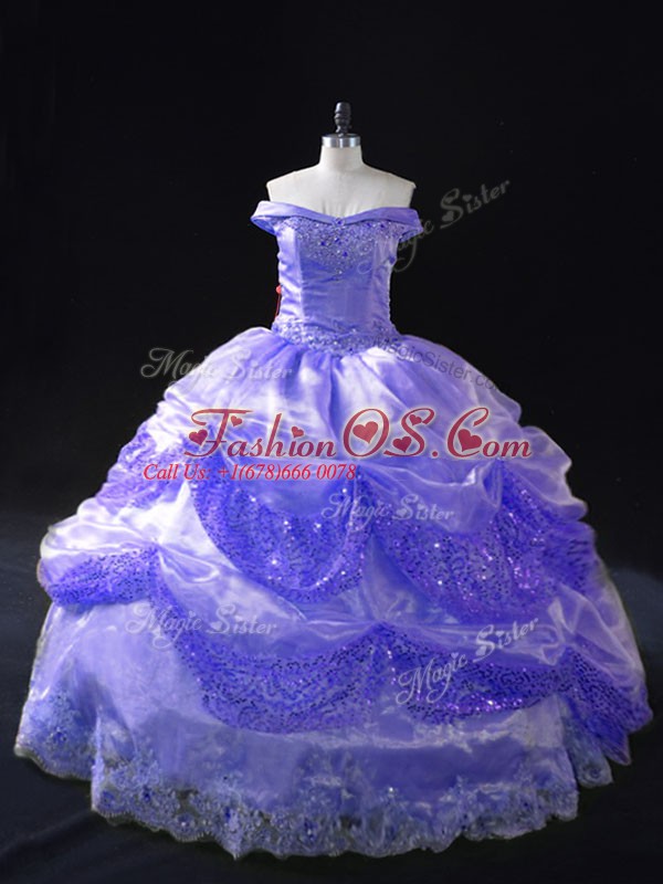 Best Selling Off The Shoulder Sleeveless Organza 15 Quinceanera Dress Beading and Pick Ups Lace Up